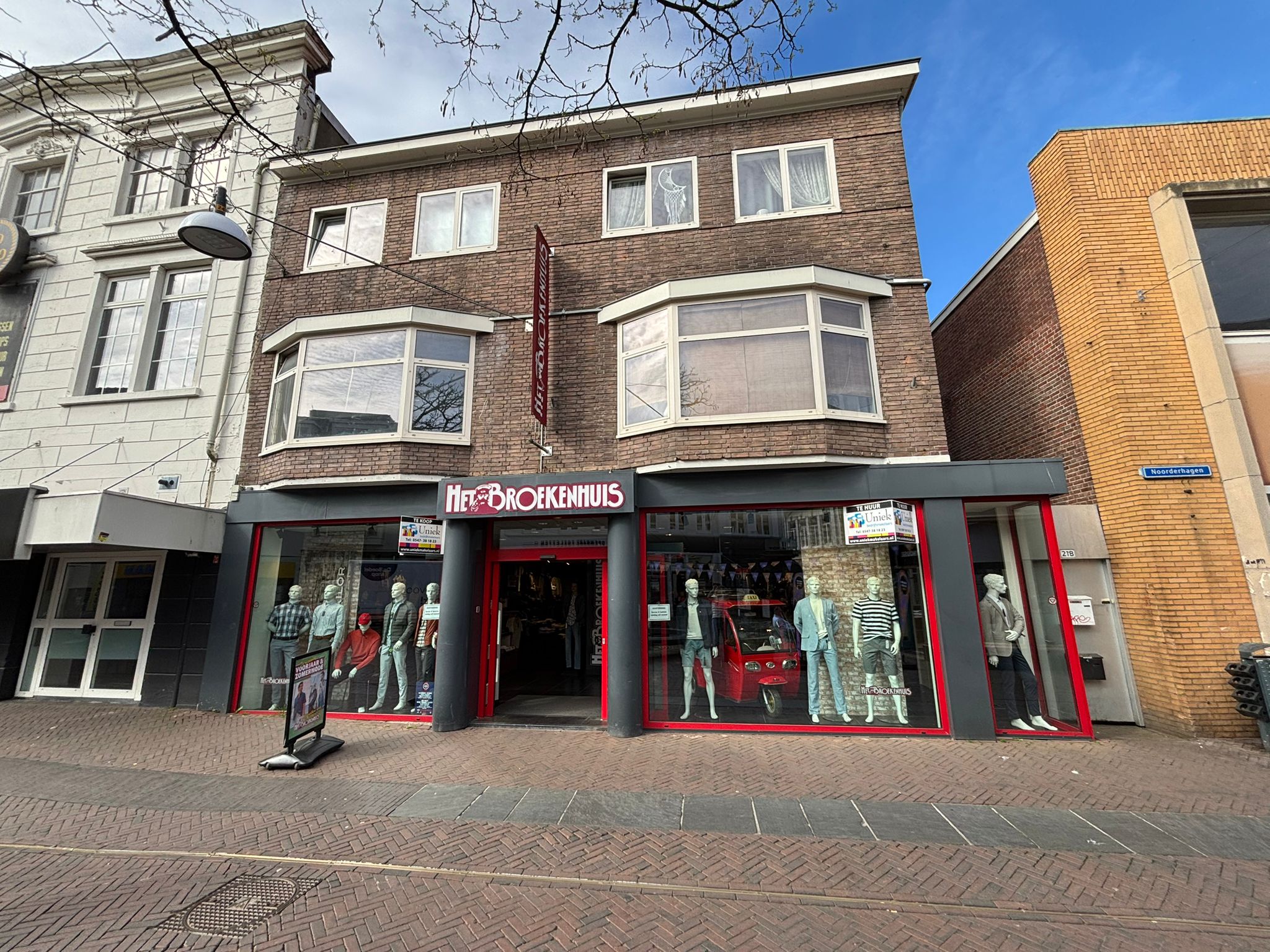 Zittende huurder Texton Fashion B.V. (handelsnaam het Broekenhuis) is eventueel bereid om per datum notariele levering een 5 jarige huurovereenkomst te sluiten met koper op basis van een ROZ huurovereenkomst met een huurprijs van € 62.500,00 per jaar. Huurder wenst een breakoptie na 2 dan wel 3 huurjaren.