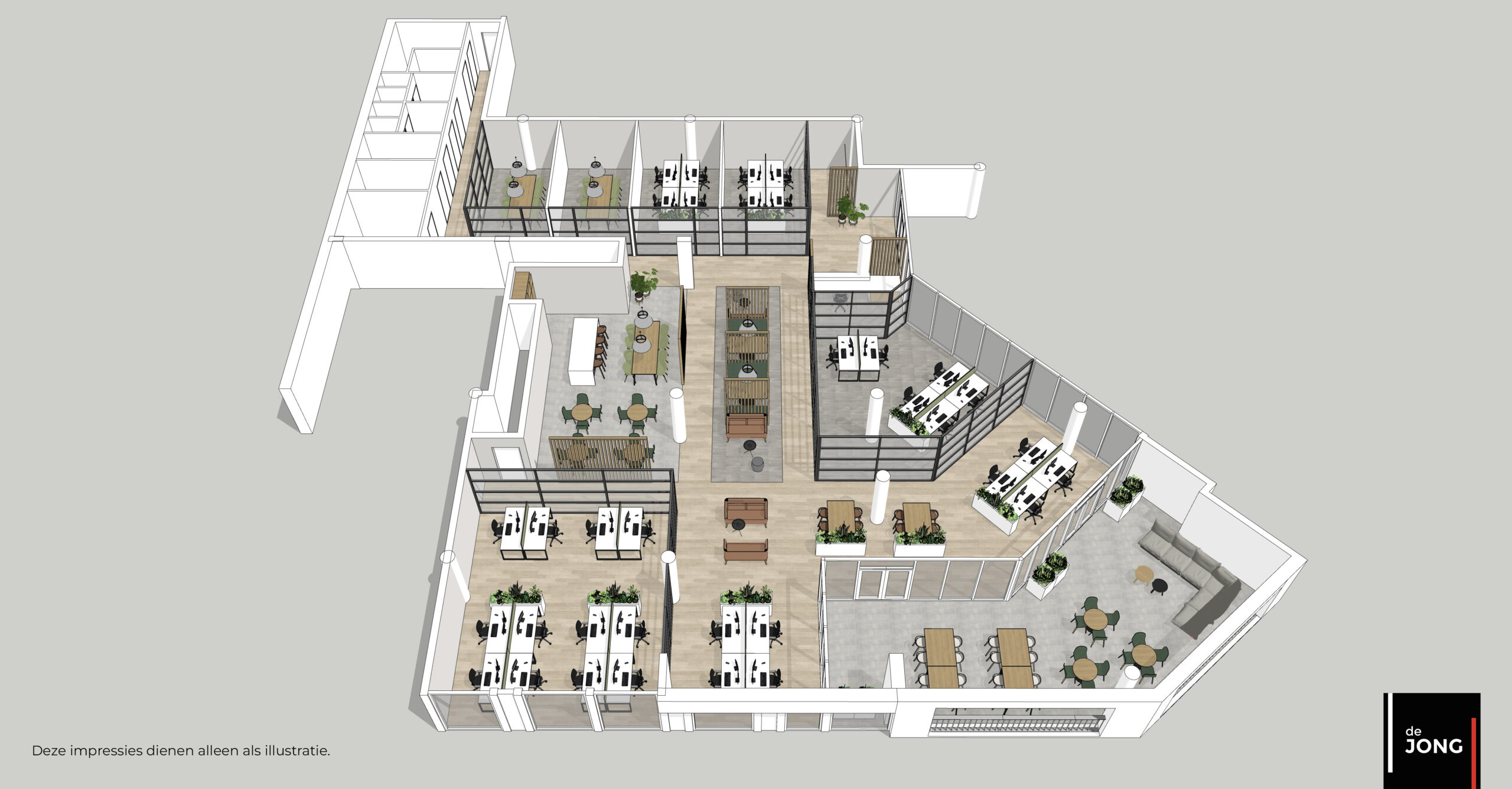 Een Turn-Key oplevering inclusief installaties, wand-, plafond- en vloerafwerkingen, tussenwanden, toiletten en keuken behoort tot de mogelijkheid. De huurprijs is mede afhankelijk van de wensen van huurder. Hierover gaan wij graag met u over in gesprek.