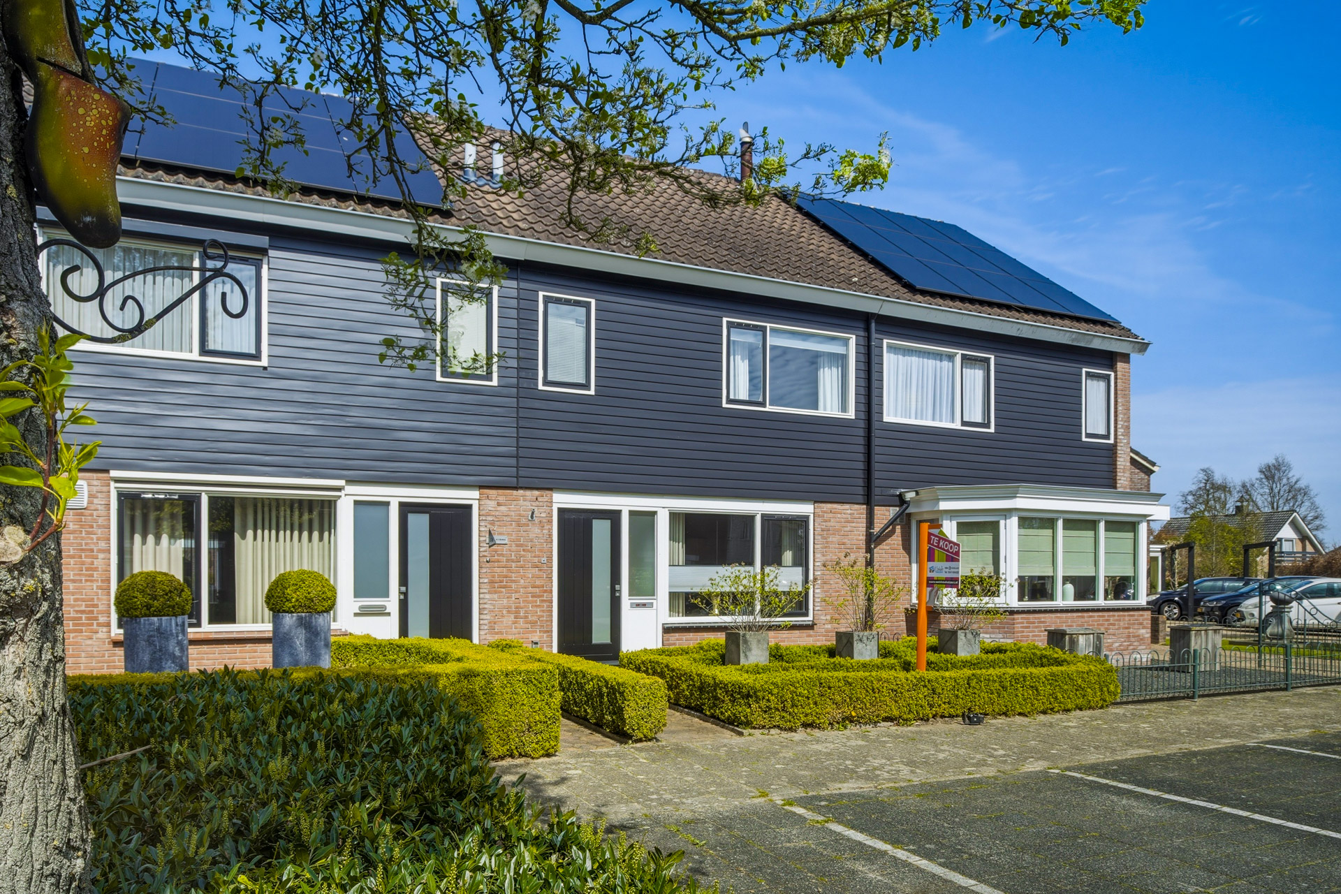 Via een voetpad bereikt u de voordeur. De voortuin is verzorgd aangelegd en onder andere voorzien van een buxushaag.