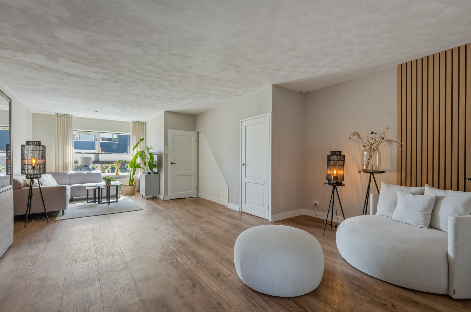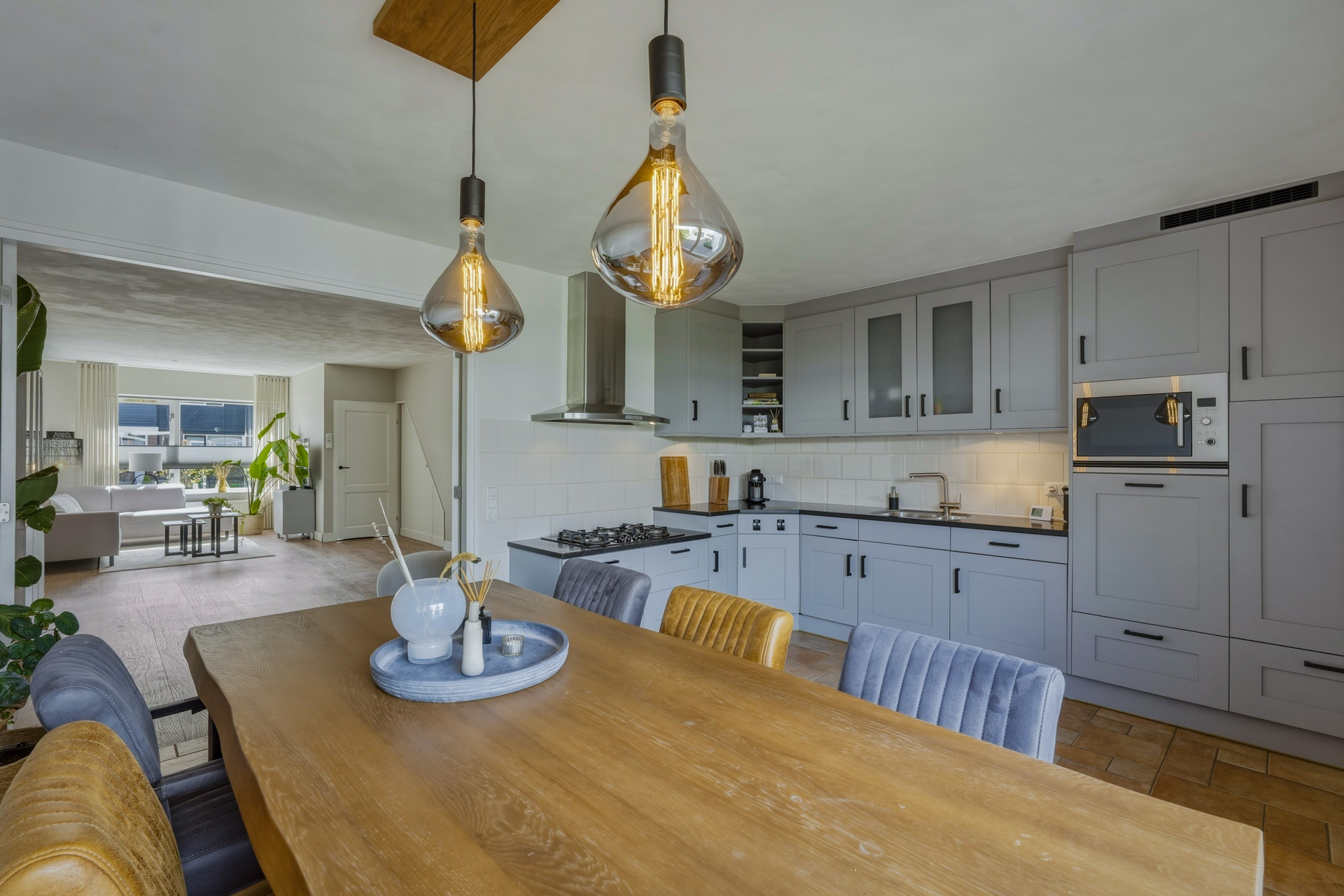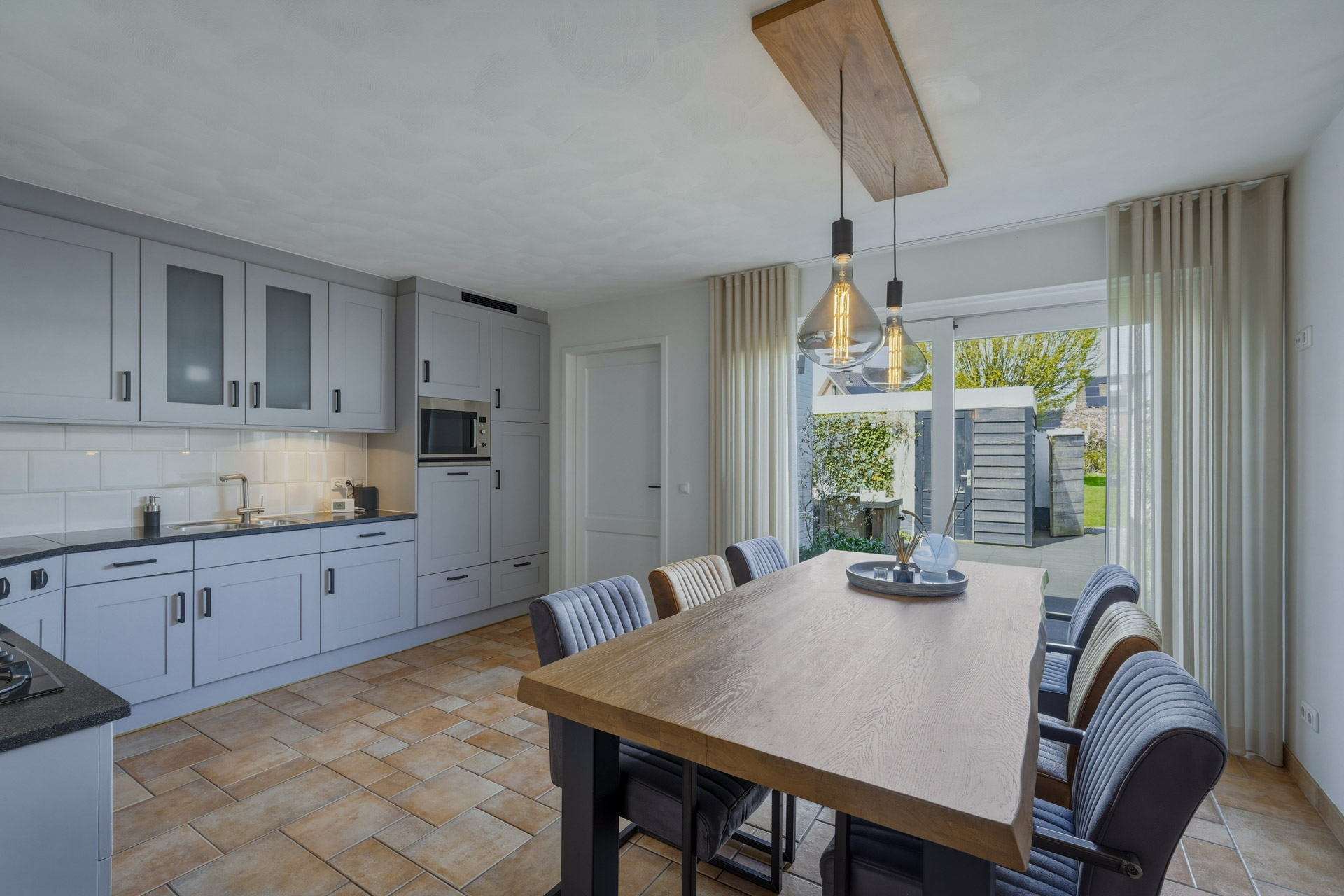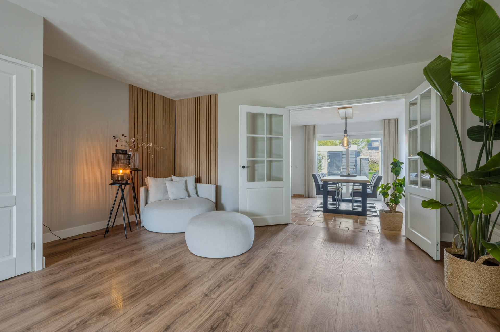 Middels dubbele deuren is de woonkeuken te bereiken. De dubbele deuren zorgen voor een prettige scheiding tussen de twee leefruimtes, terwijl de open verbinding behouden blijft.