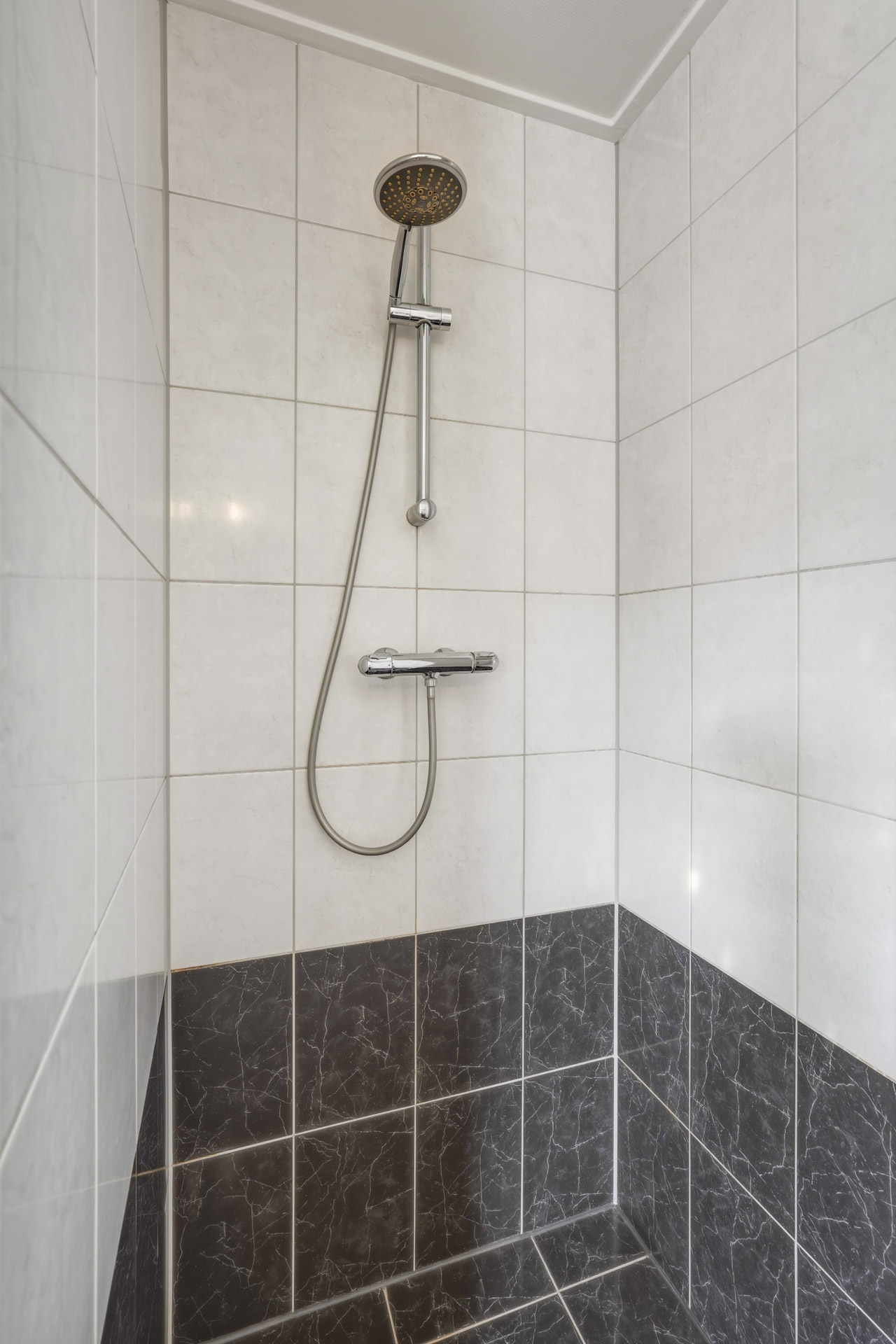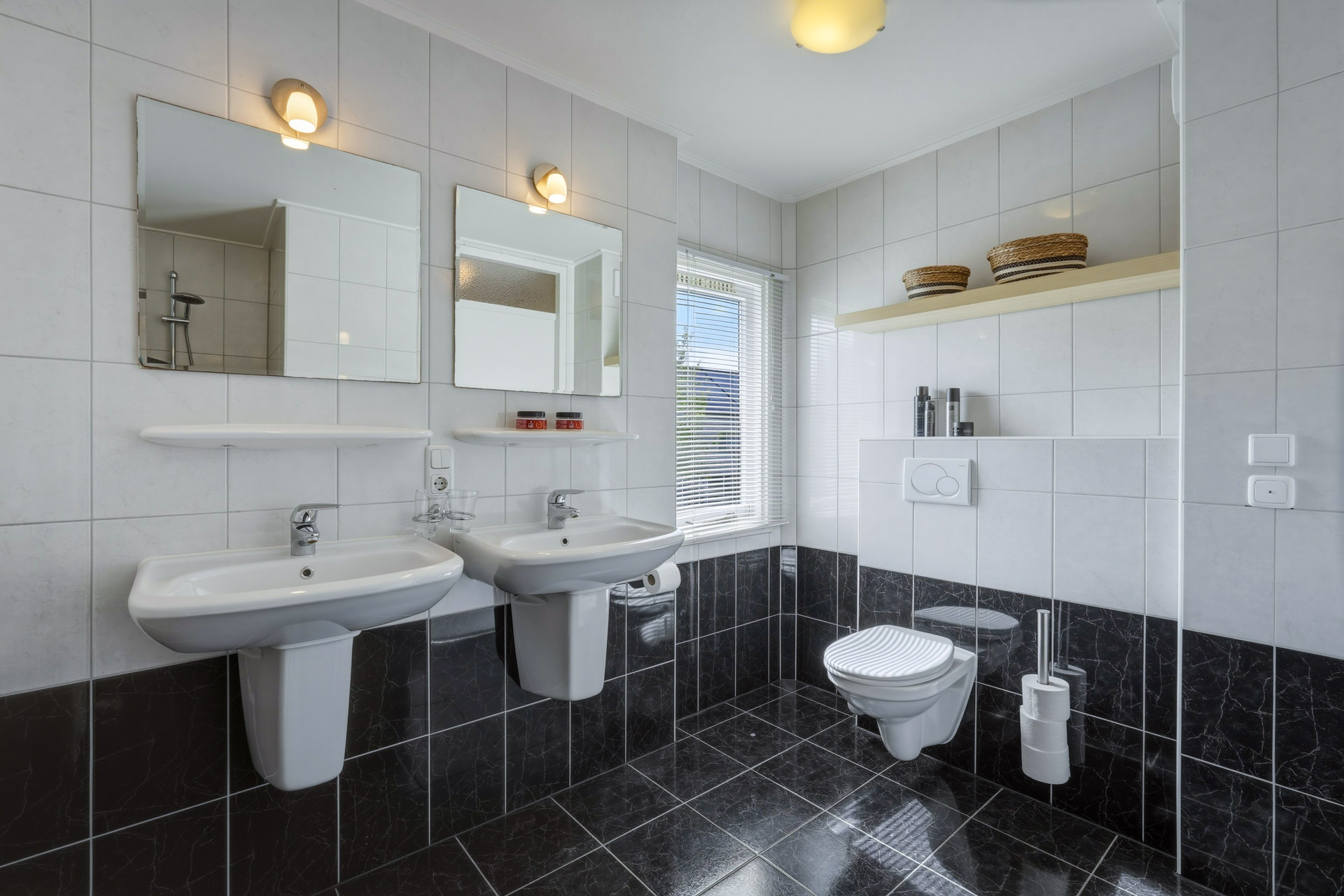 Overloop met airco-installatie welke toegang biedt tot drie slaapkamers waarvan 2 voorzien zijn van horren. De badkamer is voorzien van inloopdouche, dubbele wastafel, tweede wandcloset en designradiator.
