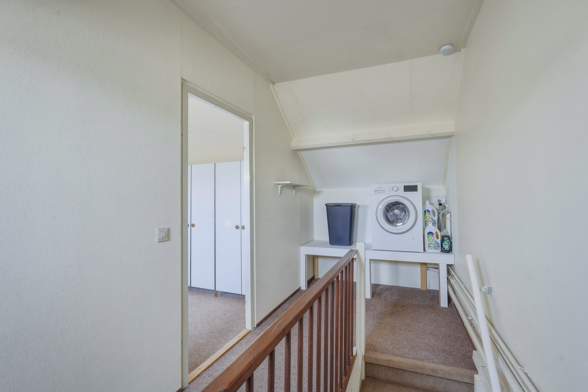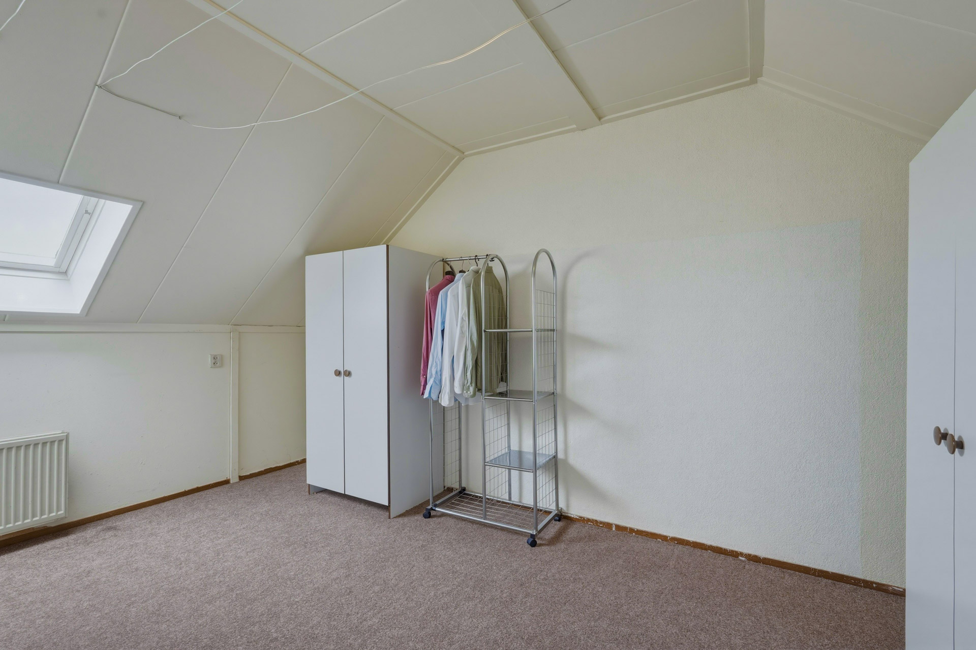 Middels vaste trap bereikbare voorzolder waar zich de witgoedaansluitingen en de cv-installatie bevinden. Vanuit de voorzolder is een vierde slaapkamer bereikbaar voorzien van dakraam en extra opbergruimte achter de knieschotten.