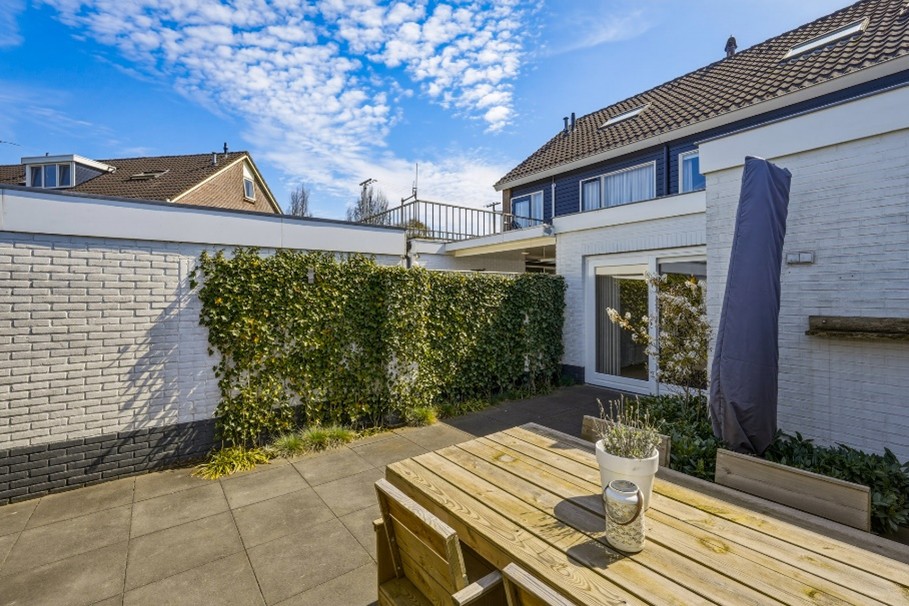 In de onderhoudsvriendelijke achtertuin vindt u een prettig terras en aan de achterzijde een stenen berging voorzien van elektra, ideaal voor het stallen van fietsen en privé-eigendommen.