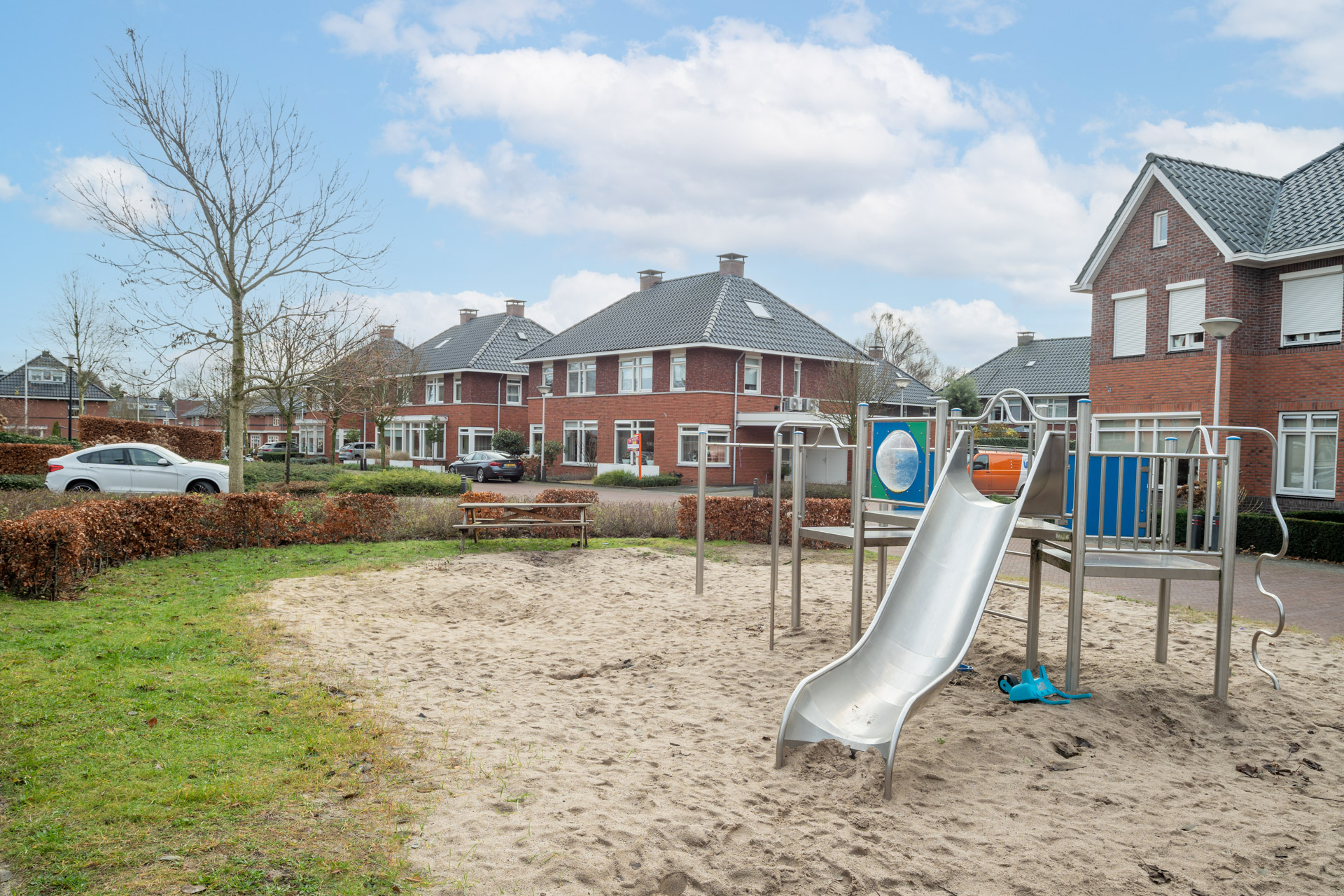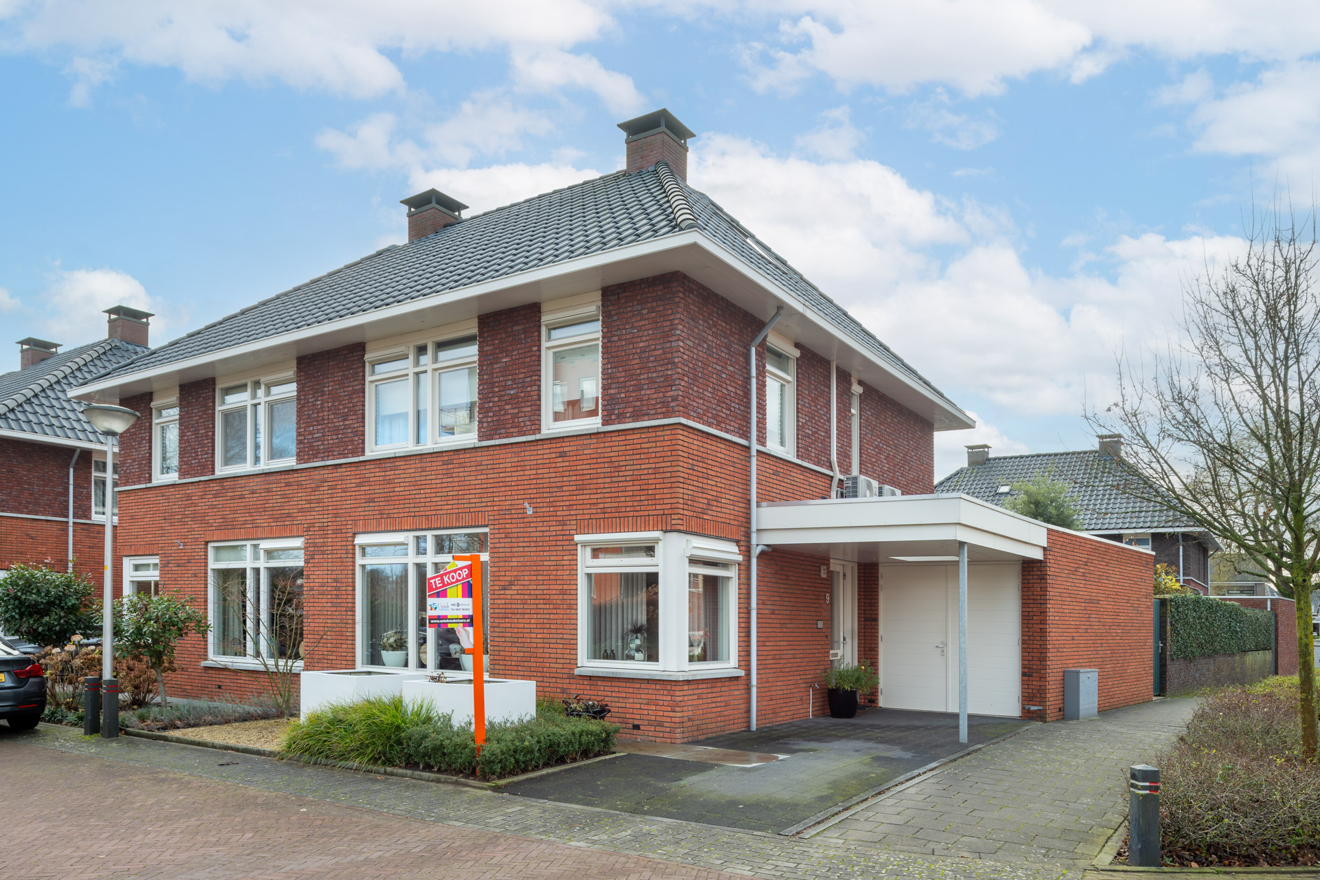 Aan de voorzijde beschikt de woning over een eigen oprit voorzien van carport.