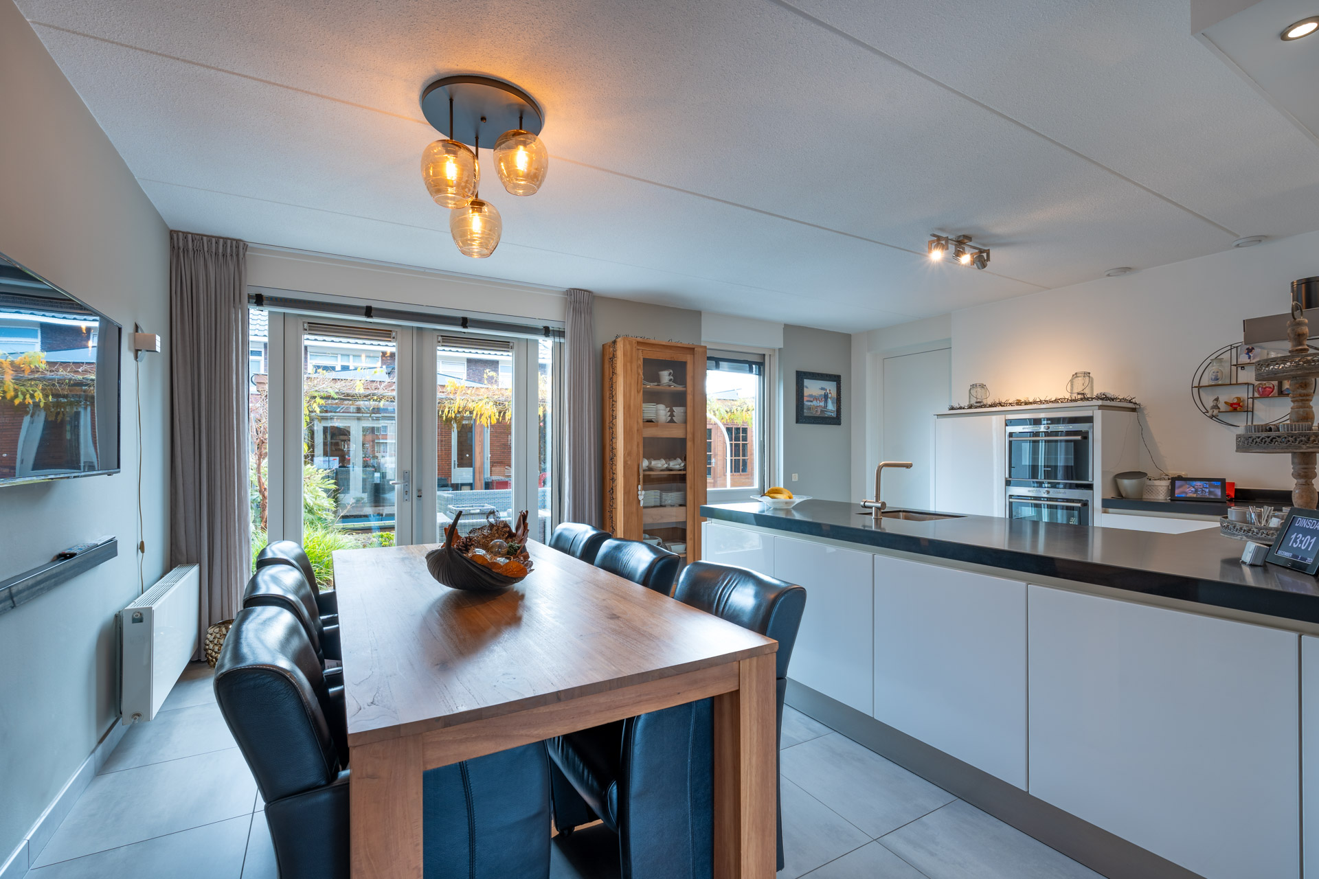 ‐ Keuken met openslaande terrasdeuren naar de achtertuin;