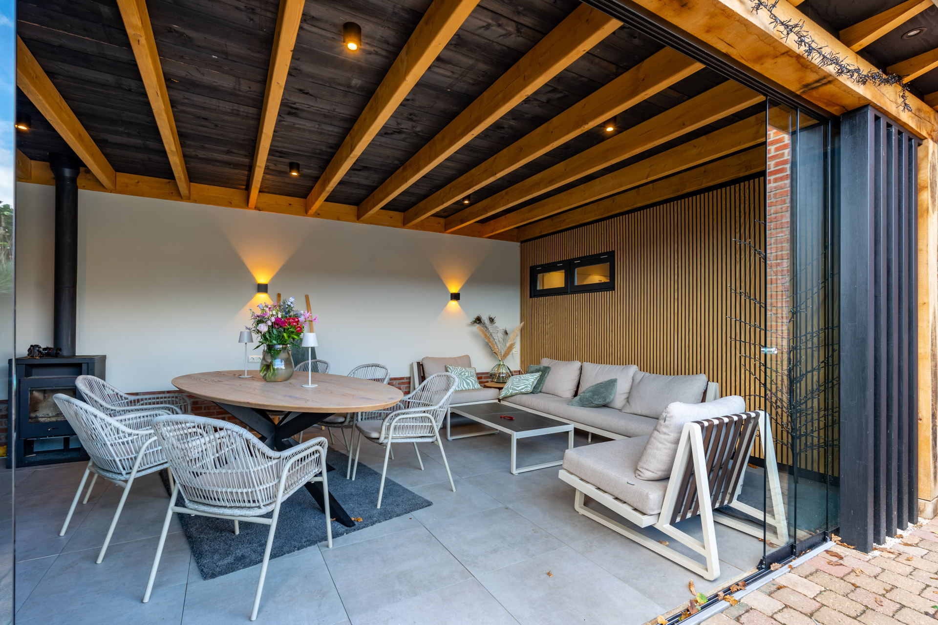 – Tuinkamer met houtkachel en elektra;