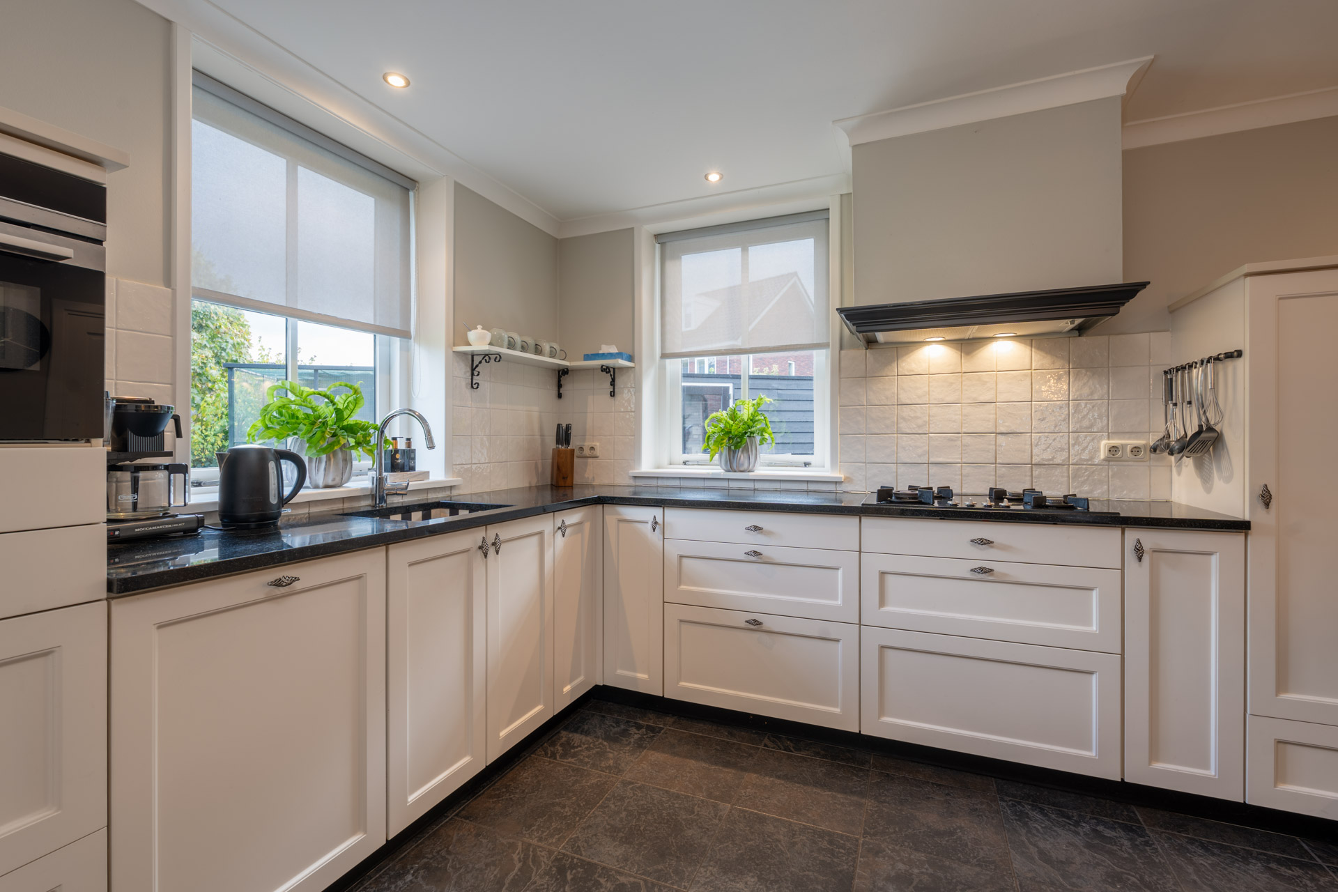 sfeervolle erker en prettig lichtinval. Daarnaast is de begane grond voorzien van een bijkeuken met trapkast, een praktisch kantoor/hobbykamer, een wasruimte en een modern toilet.