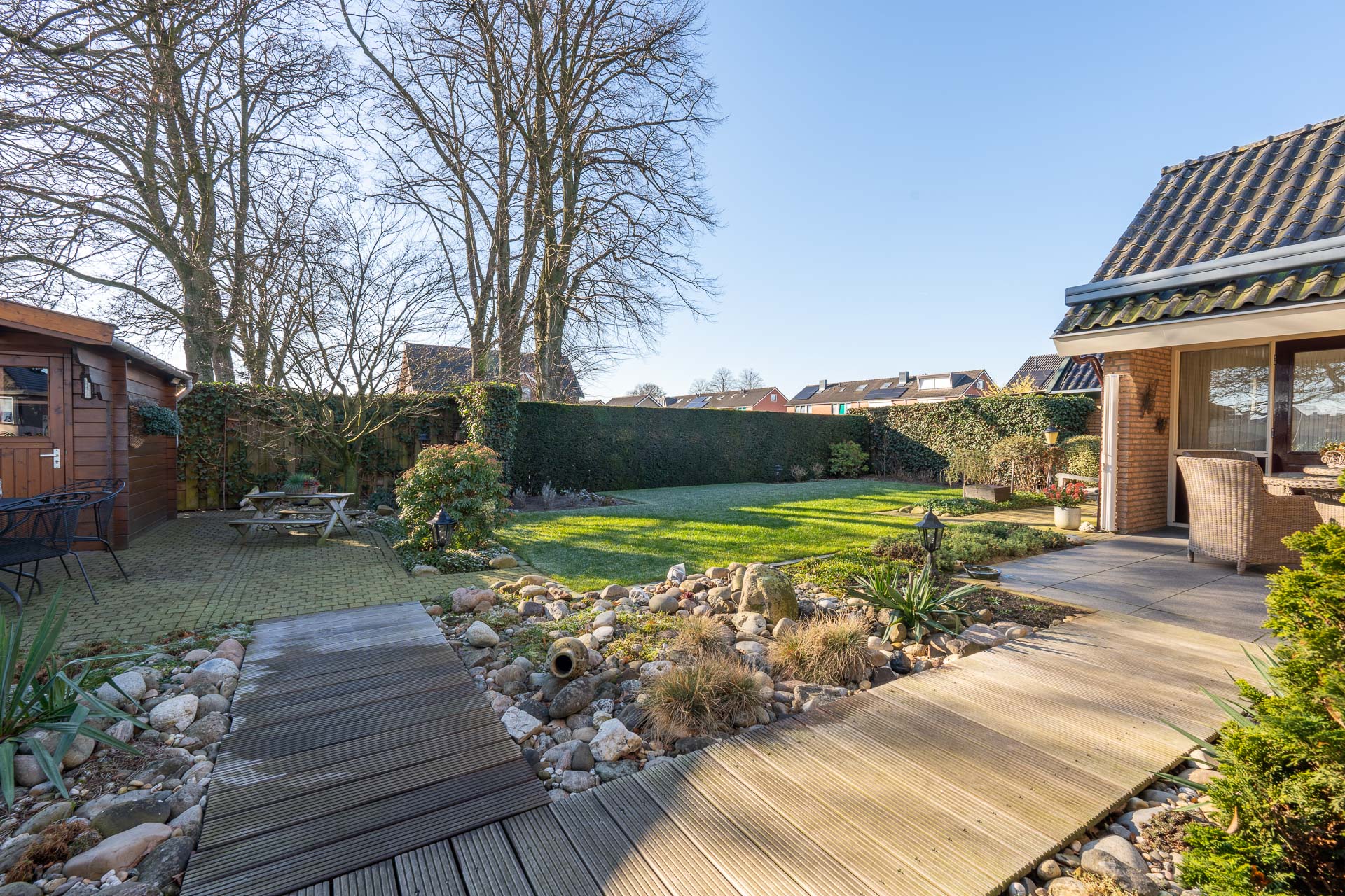 De woning staat op een ruim perceel met een verzorgde tuin rondom. In de tuin zijn meerdere terrassen aangelegd waardoor er altijd een plek in de zon of schaduw te vinden is.