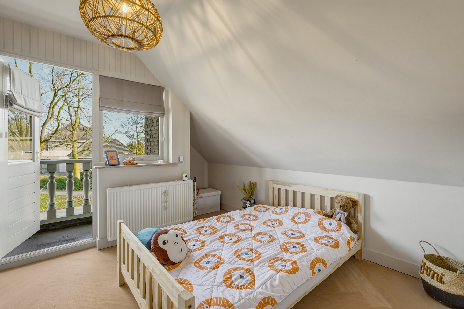 Overloop met vide en toegang tot meerdere slaapkamers. De slaapkamers zijn ruim van opzet en beschikken over vaste kastruimte. Eén van de kamers biedt toegang tot een balkon.
