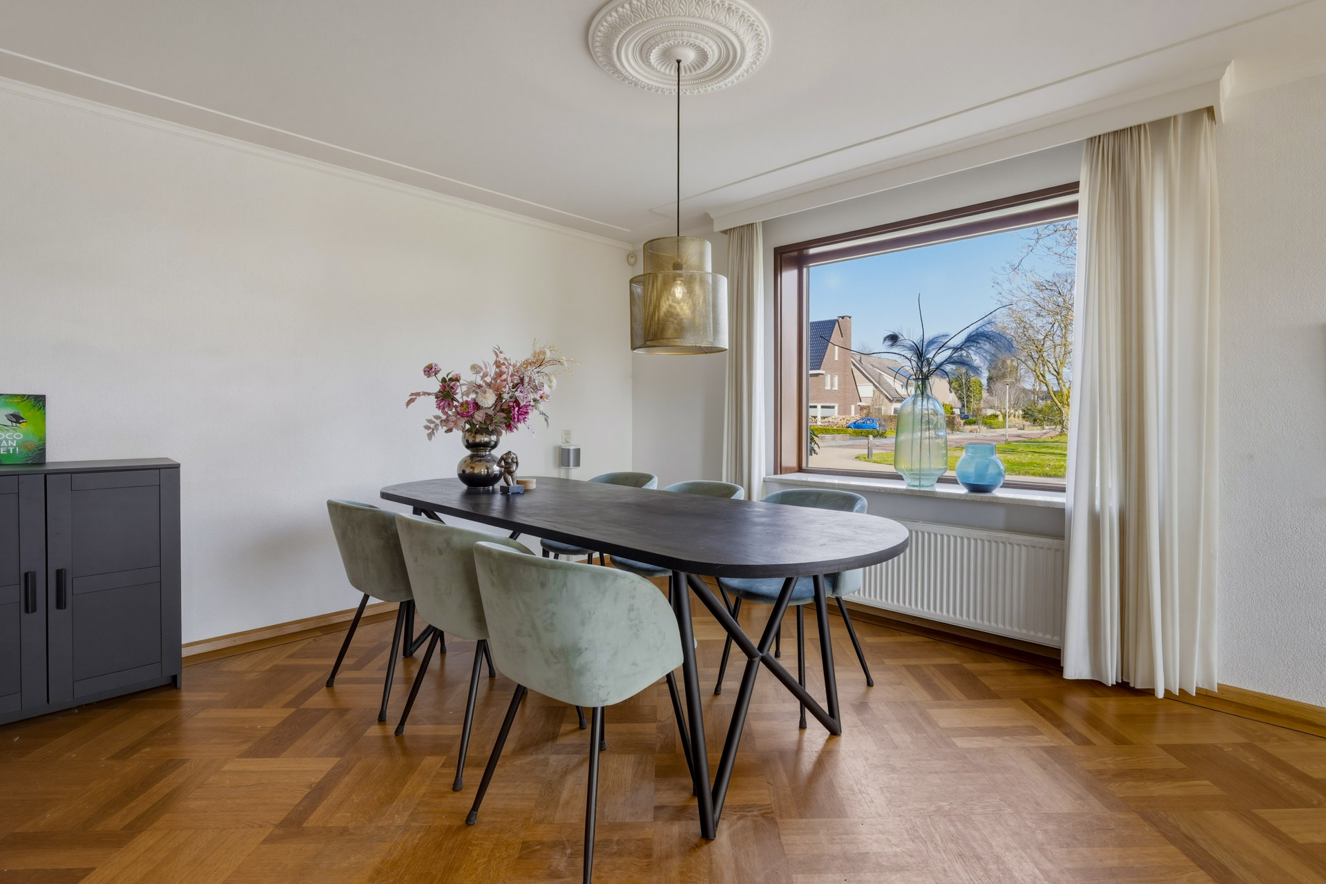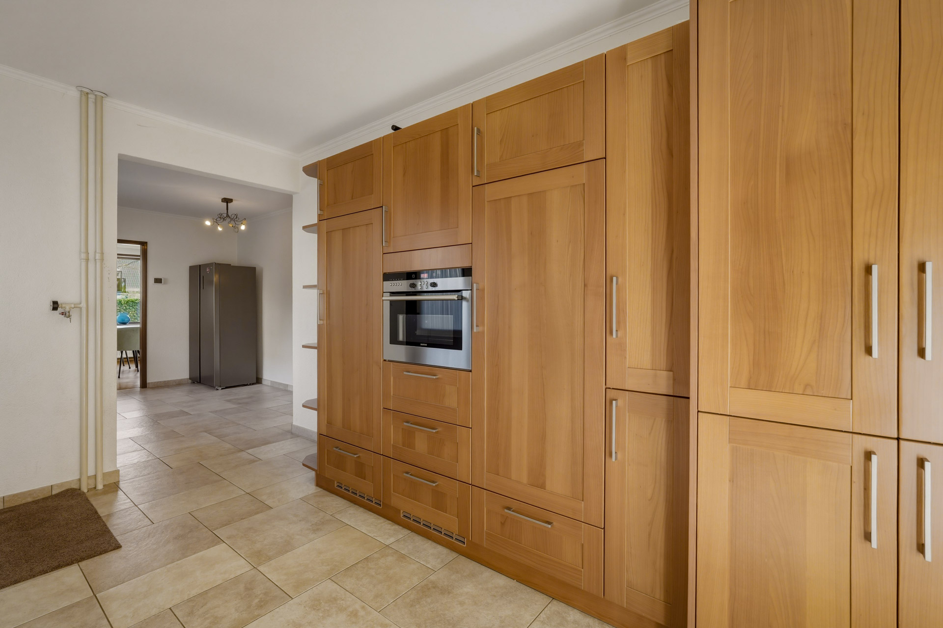 De woonkamer is ruim opgezet en beschikt over veel natuurlijk licht. De L-vormige indeling biedt voldoende ruimte voor zowel een zithoek als een eethoek. De keuken bevindt zich aan de achterzijde van de woning en is voorzien van diverse inbouwapparatuur. Vanuit de keuken is er toegang tot de bijkeuken, welke extra praktische bergruimte biedt en tevens een doorgang vormt naar de garage en de achtertuin.