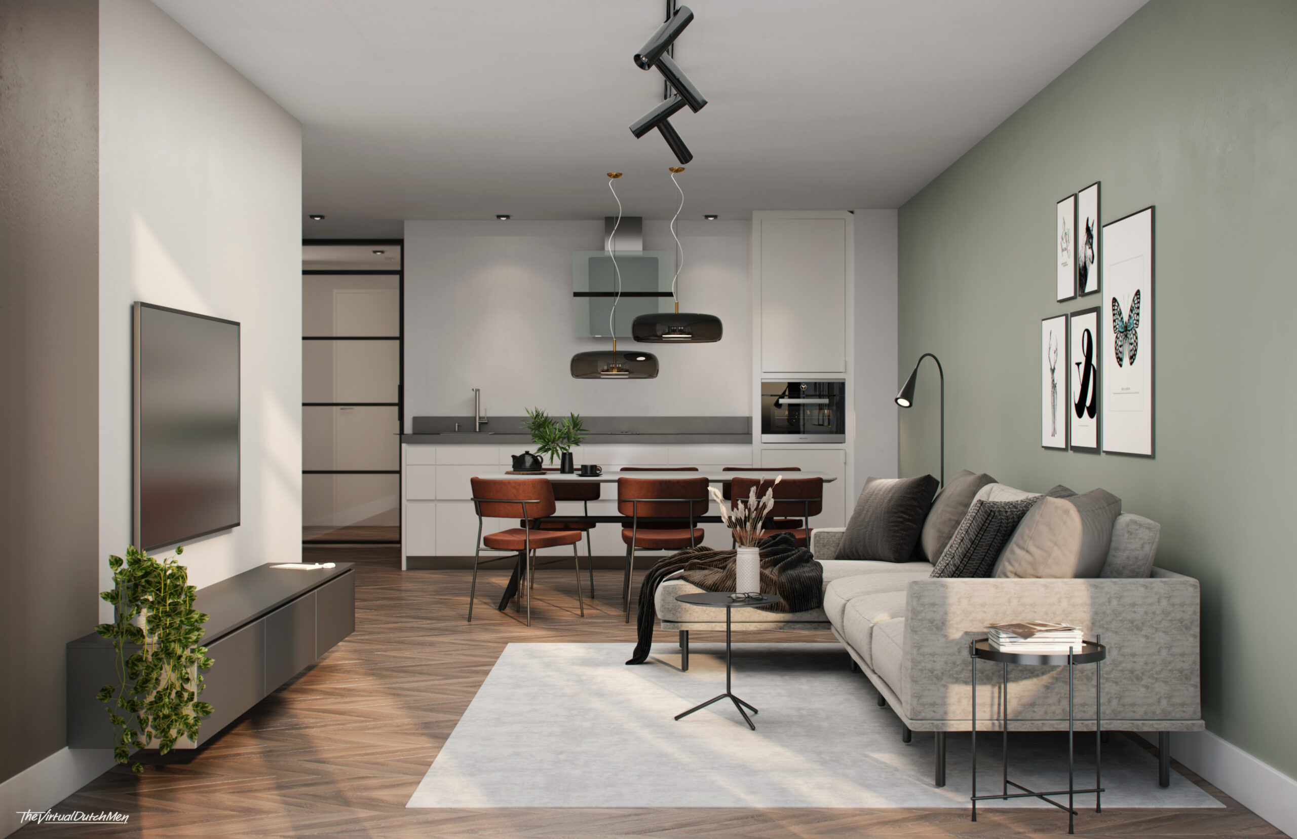 – Woonkamer met open keuken;