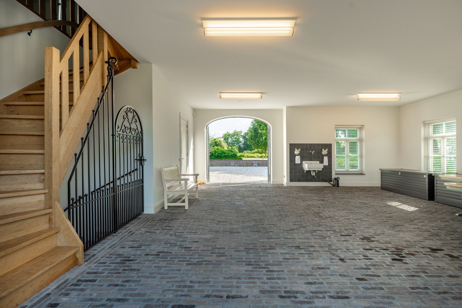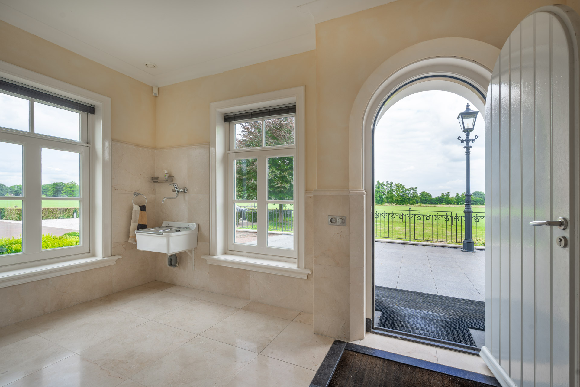 Binnen is het koetshuis voorzien van een lichte winterkamer: een intieme, verwarmbare ruimte met zicht op de tuin. Daarnaast beschikt de winterkamer over een luxe afgewerkt toilet.