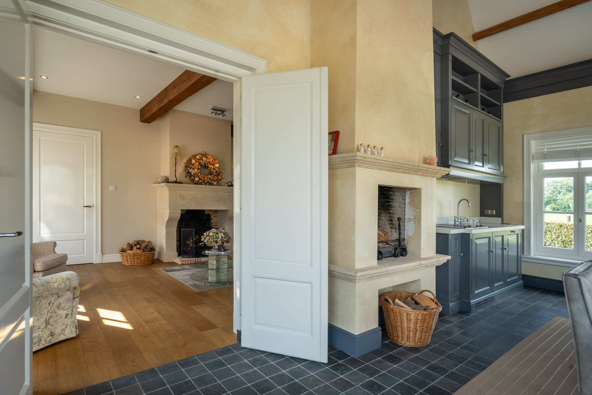 – Open haard met natuurstenen schouw in zowel woning als koetshuis (Anneke Dekkers);
