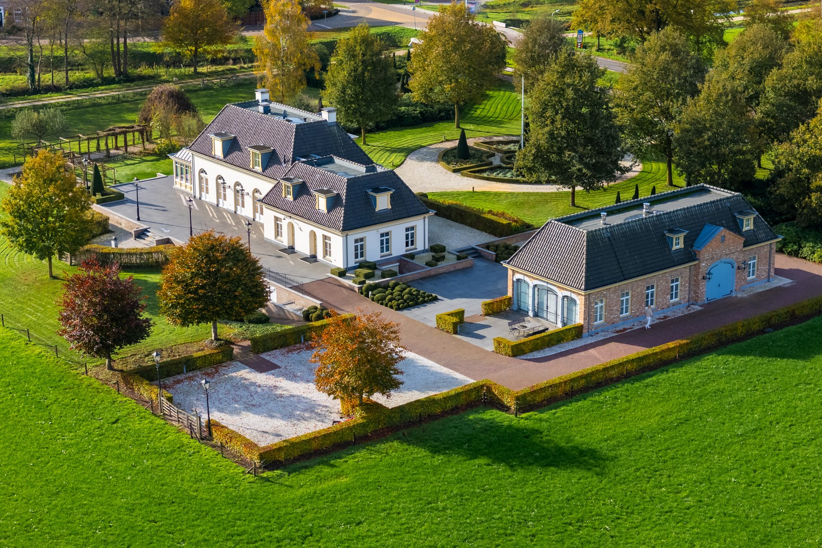 Op enkele passen van de hoofdwoning bevindt zich een vrijstaand koetshuis – een stijlvol bijgebouw met een klassieke uitstraling, in harmonie met de architectuur van het hoofdhuis.